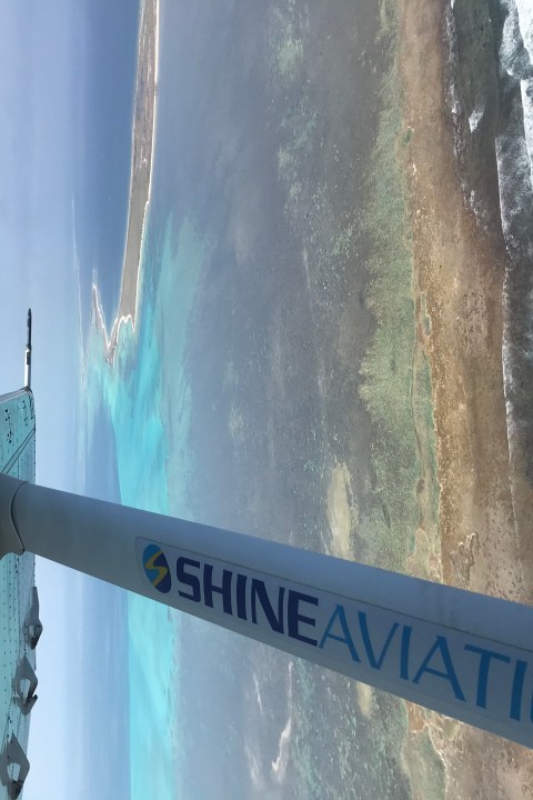 - Please arrive at the Shine Aviation terminal 45 minutes prior to departure. There, your experienced tour pilot conducts a pre-flight discussion, showing a map of the Abrolhos Islands, explaining the history, outlining the day’s activities, and providing a safety brief. The scenic flight from Geraldton takes just over one hour, and the plane lands at East Wallabi Island.